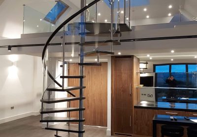 For commercial projects we can make spiral staircases over 3.0m diameter with different platform and balcony options, for larger projects like this you can even visit your spiral while its being manufactured.